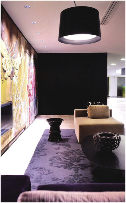 圖 酒店大堂的墻壁是用用刺繡和印花布拼接而成的裝飾,與現(xiàn)代裝飾品形成完美的對比