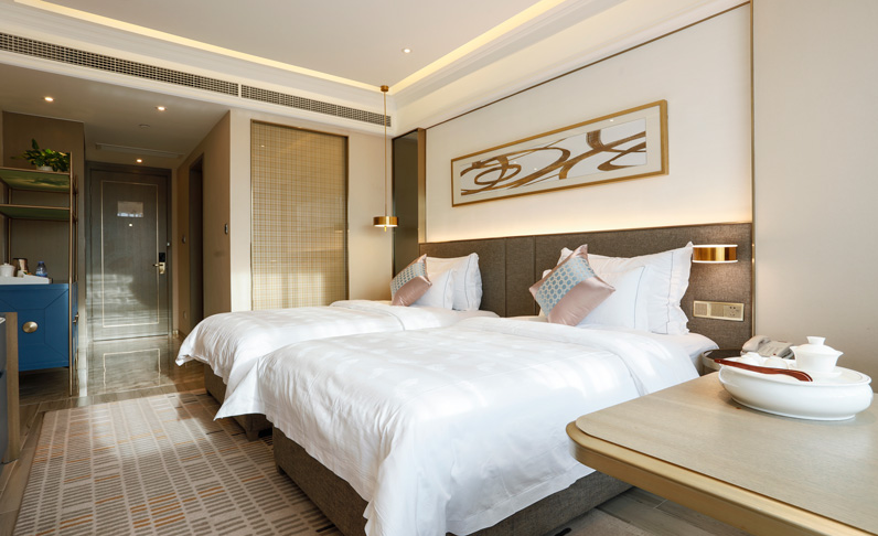 衛(wèi)生間使用玻璃門(mén)裝飾房間,可以讓房間整體效果上看起來(lái)面積更大,因?yàn)椴AчT(mén)的厚度比較薄,和磚墻隔間相比能省出近十公分的空間,而且玻璃材質(zhì)顯得房間更加通透,視覺(jué)上看起來(lái)更寬敞,客人在入住以后一眼可以看完房間所有區(qū)域,沒(méi)有阻隔、壓迫感,住得也更舒心。關(guān)于酒店設(shè)計(jì)中如何布置客房衛(wèi)生間酒店這里,如需了解更多的酒店設(shè)計(jì)知識(shí)可以關(guān)注彥翔酒店設(shè)計(jì)哦。